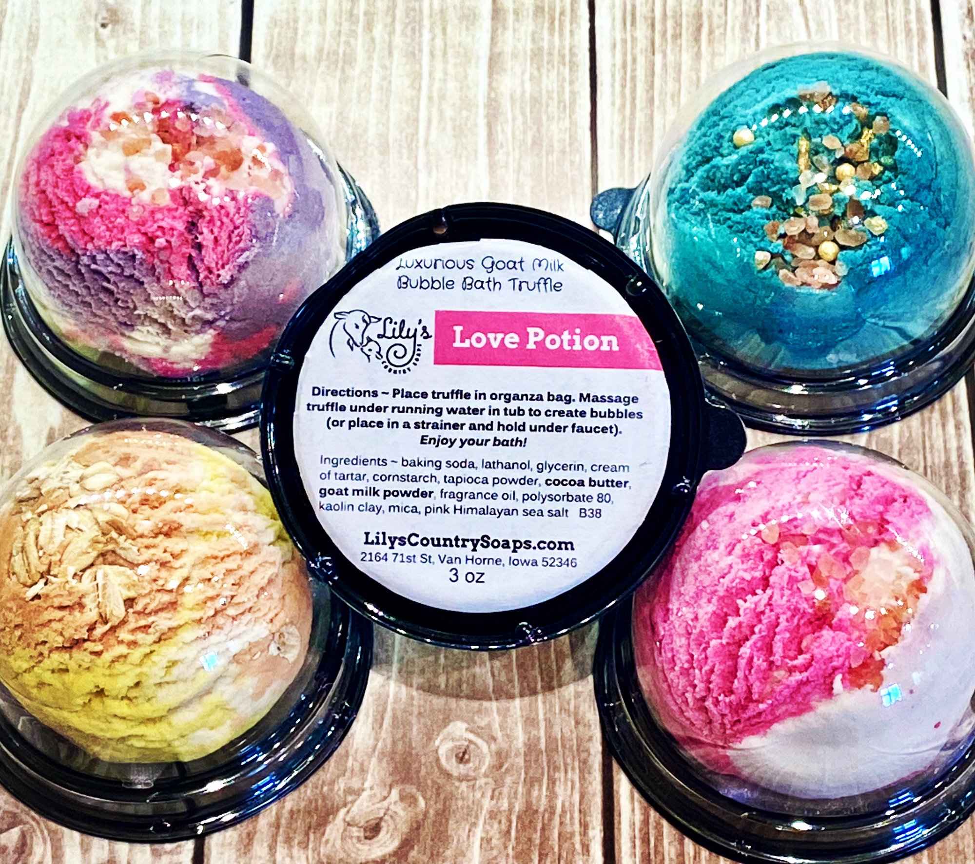 Directions for use ~ Place truffle in organza/muslin bag. Massage truffle under faucet of fast warm running water in bathtub to create bubbles (or place in a strainer and hold under faucet). Enjoy your bath!
