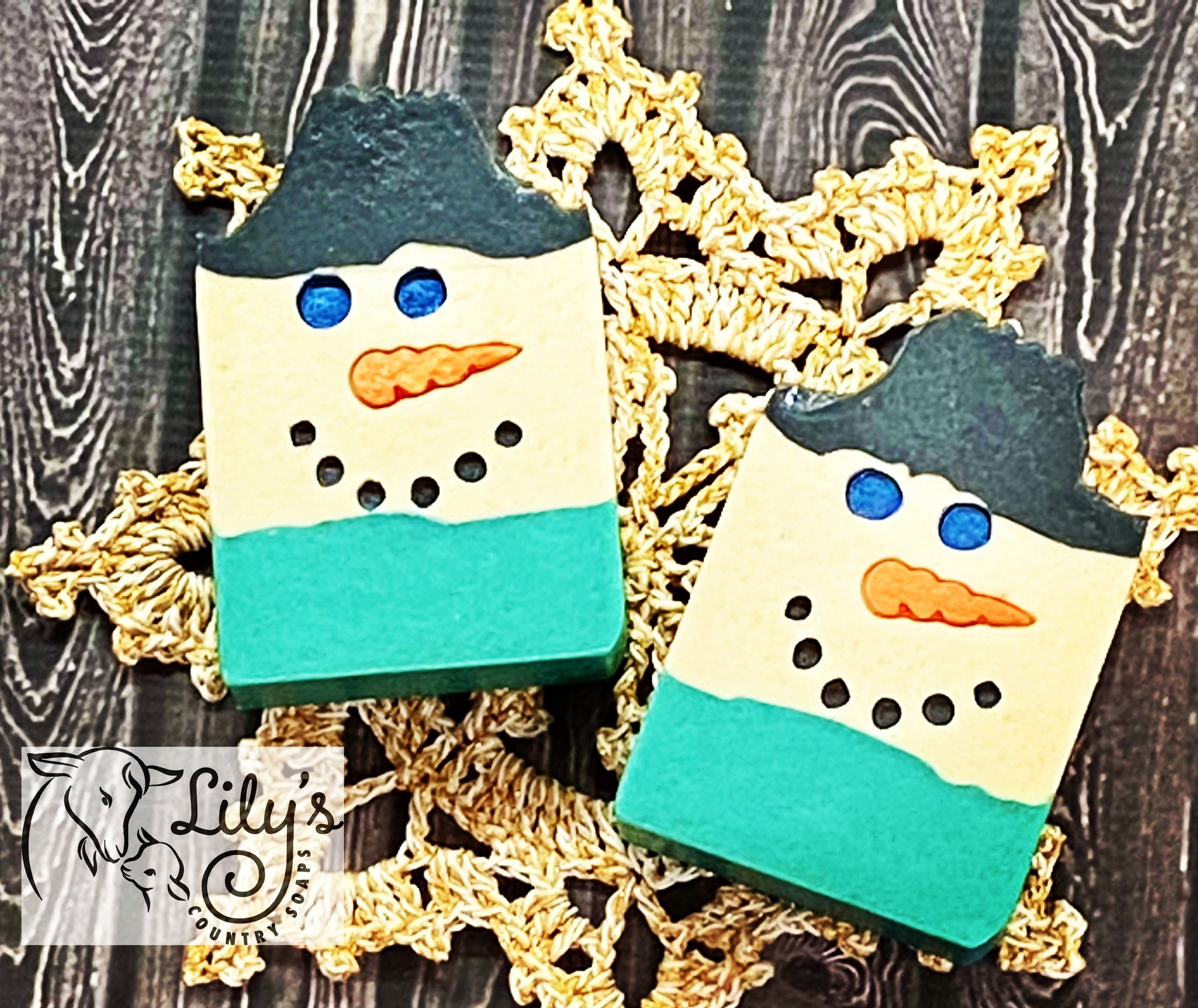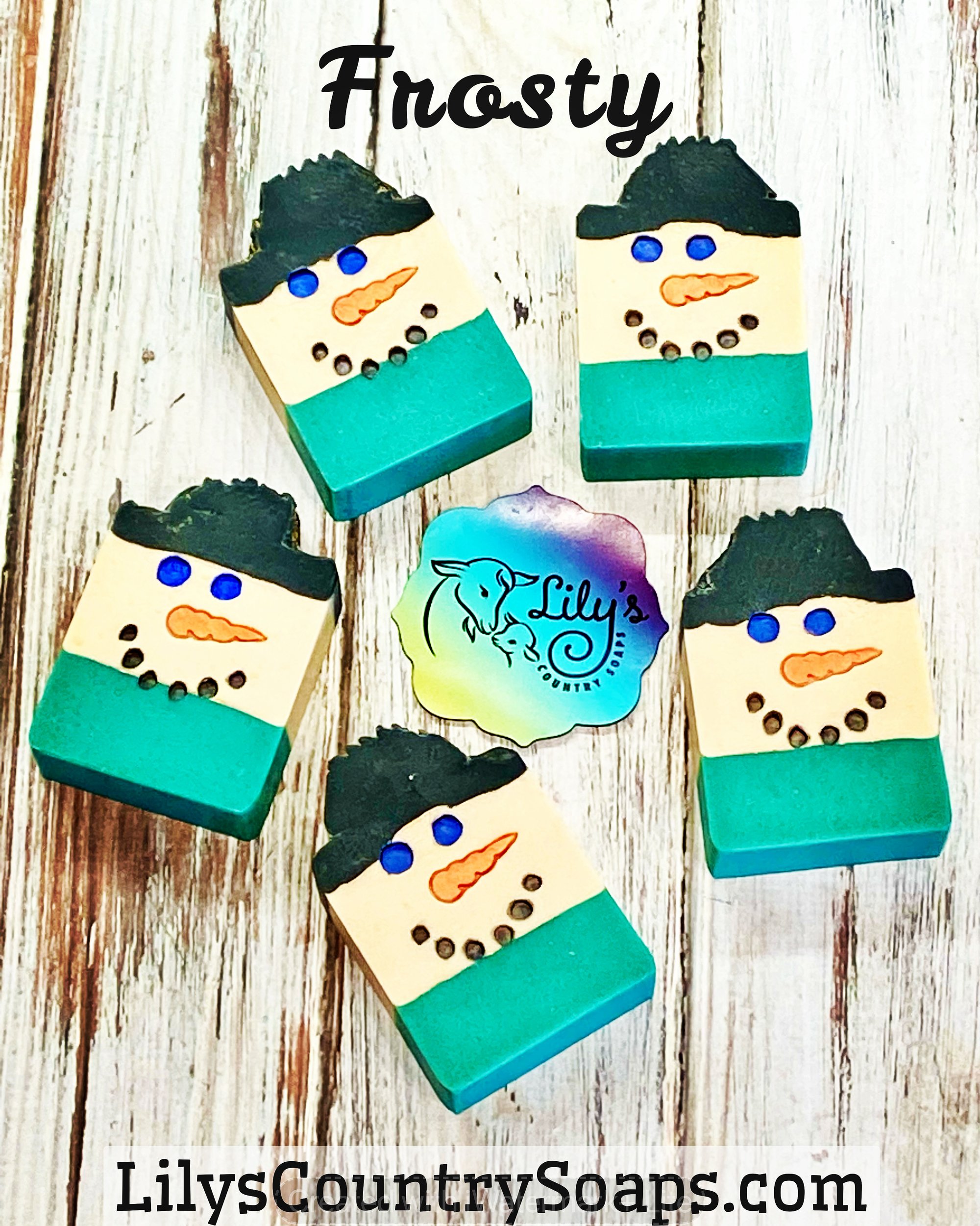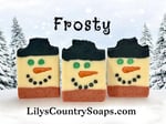 "Frosty" snowman goat milk soap with a new minty sweet scent from two kinds of peppermint essential oils and a little spearmint essential oil.