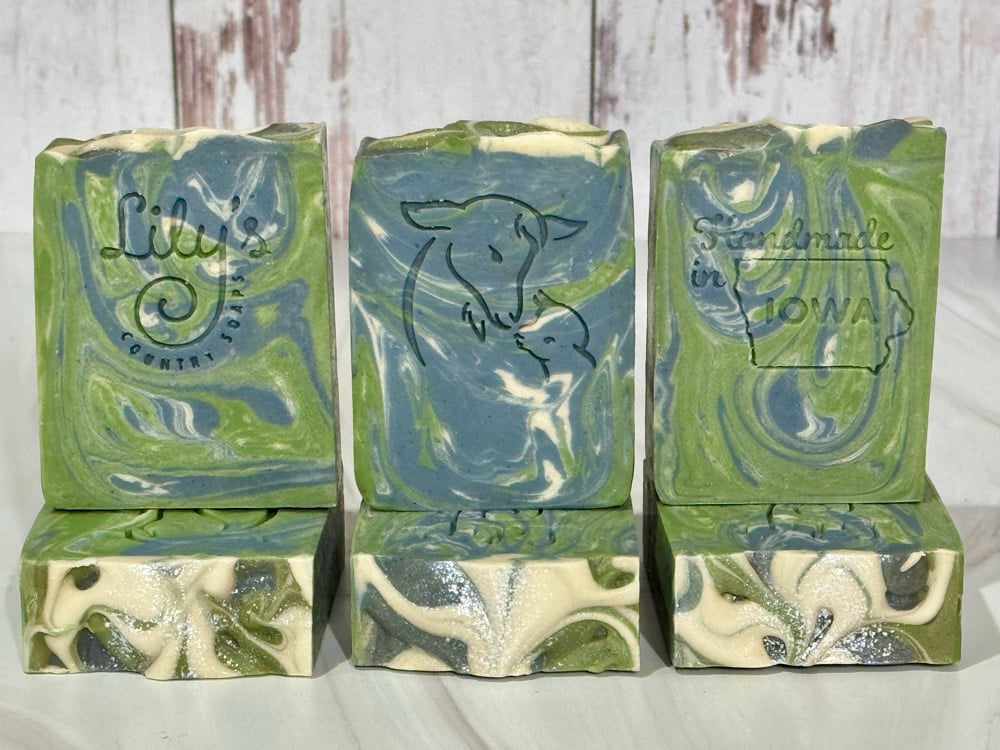 It contains olive oil, farm fresh goat milk, coconut oil, sodium hydroxide, tallow, shea butter, castor oil, fragrance, kaolin clay, mica, titanium dioxide.