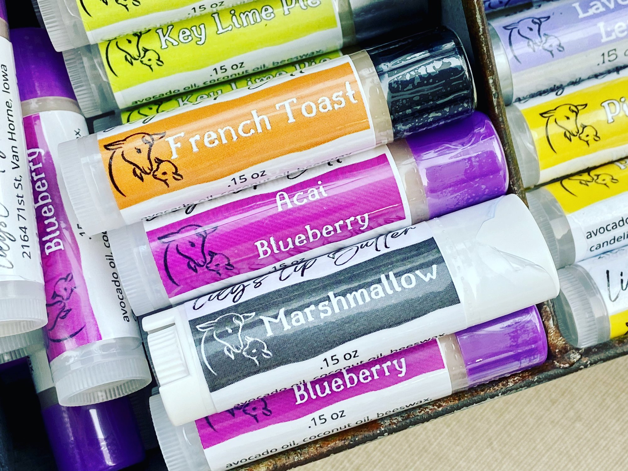 It contains skin-loving avocado oil, coconut oil, beeswax, candelilla wax, goat milk powder, vitamin E, flavor and/or essential oils, .15 oz.