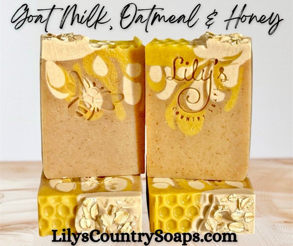 Our Goat Milk Oatmeal & Honey soap has an inviting and comforting scent. Fresh ground Oatmeal, local raw Honey and our farm fresh goat milk combine to make this a favorite and best seller. It feels silky and soft on the skin. The ground oatmeal also provides a gentle exfoliation.
