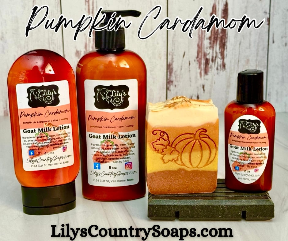 WHILE SUPPLIES LAST Pumpkin pie with touches of cardamom, clove leaf, nutmeg and rum, yum with colloidal oatmeal! A silky, smooth, non-greasy cream that feels wonderful on the skin.